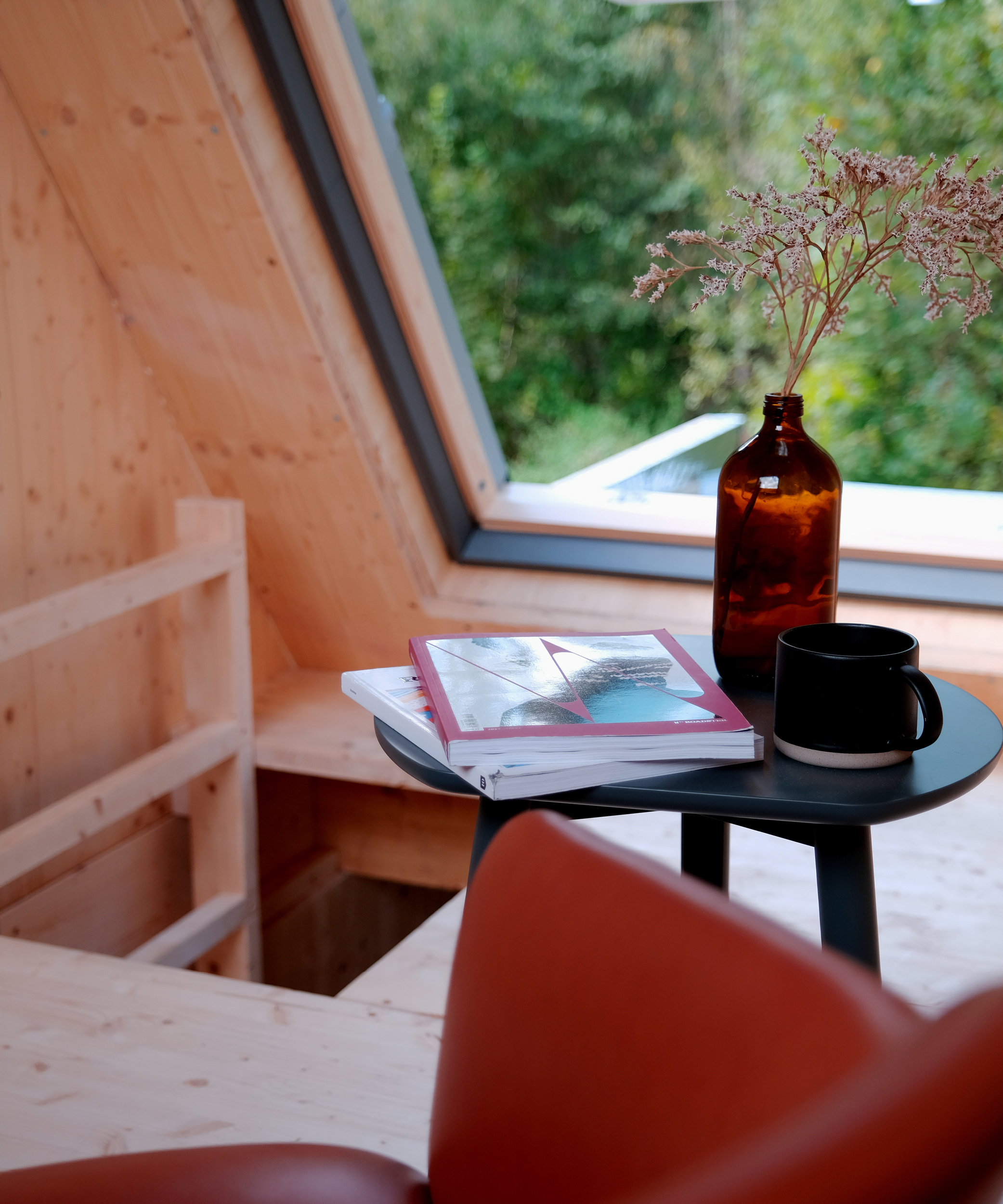 The two-story, more than 30 m2 cabin The Splinter evokes the atmosphere of Scandinavian houses with its exterior appearance, and every detail encourages a perfect retreat. The interior has a well-equipped kitchen and bathroom, and a panoramic bedroom awaits its romantic guests on the upper floor.