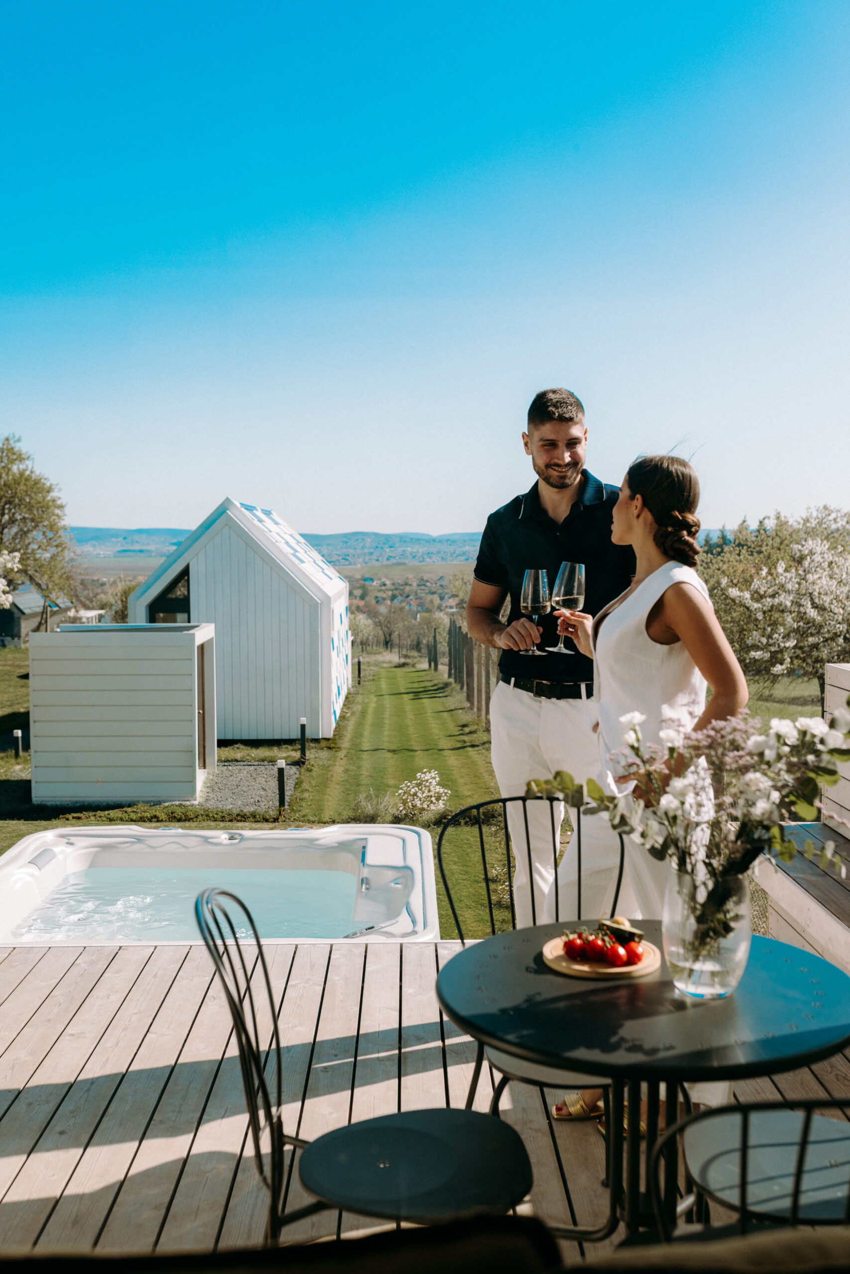Each cabin has a 4-person, private jacuzzi with a wonderful panorama of the Etyek Wine Region.