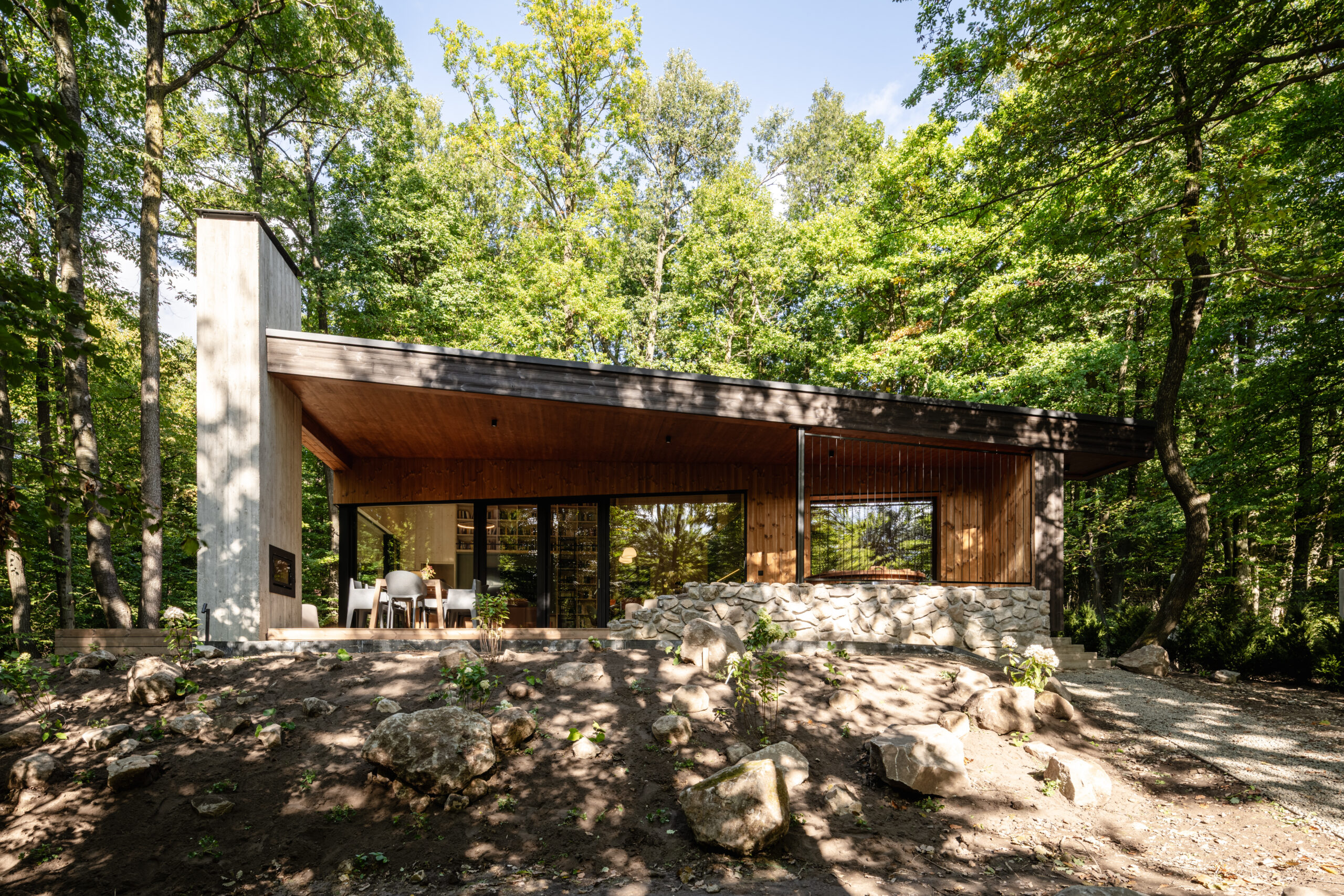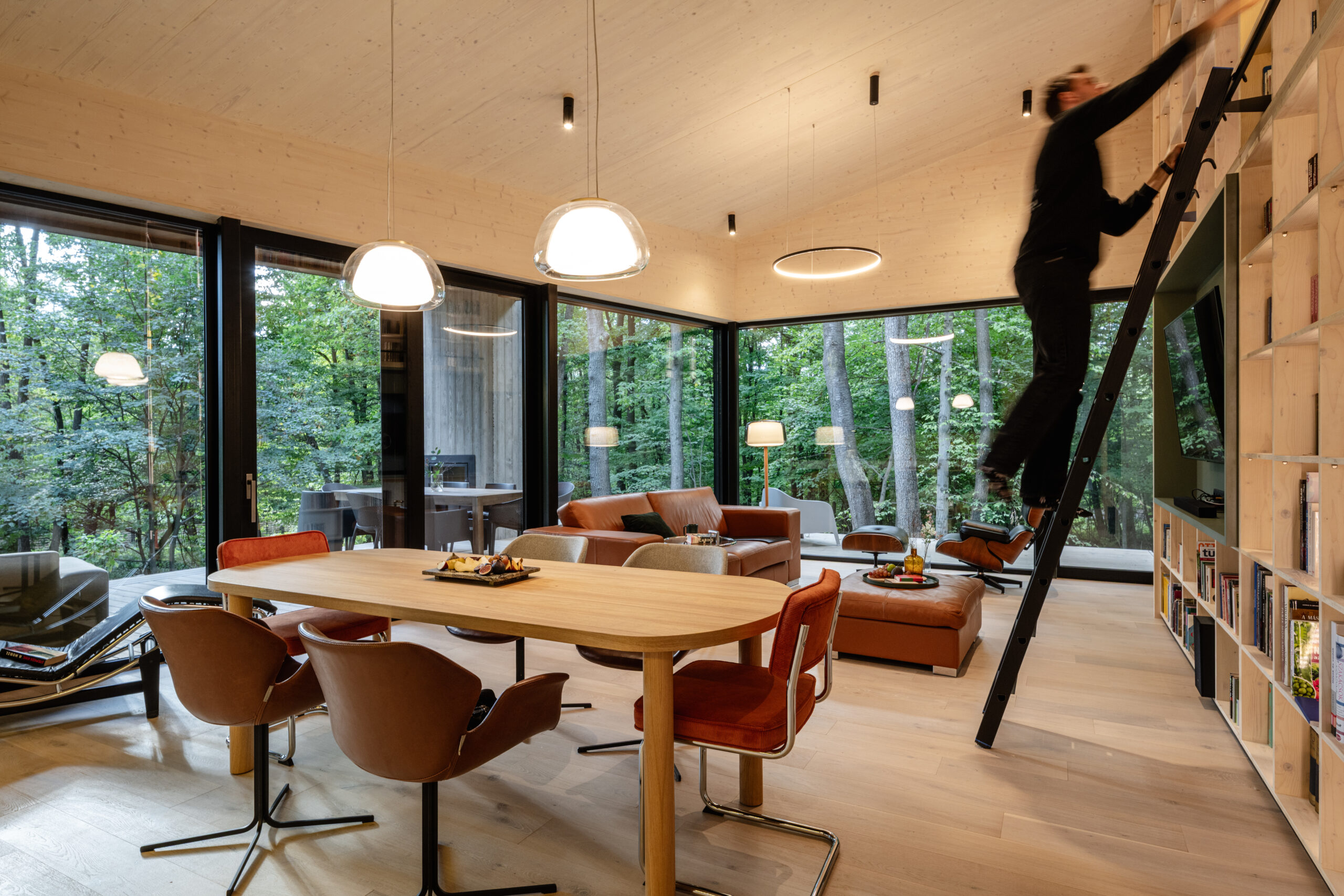Prémiová vila bola postavená s použitím prírodných materiálov uprostred lesa, no napriek tomu sa nemusíme vzdať žiadneho zo svojich očakávaní pohodlia.